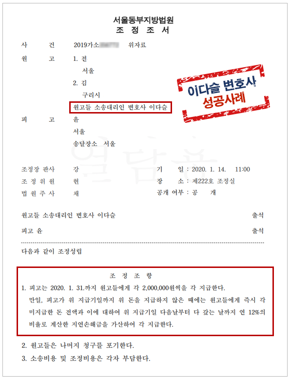 이와 별개로 민사소송을 제기하여 위자료를 청구하였습니다.
