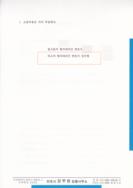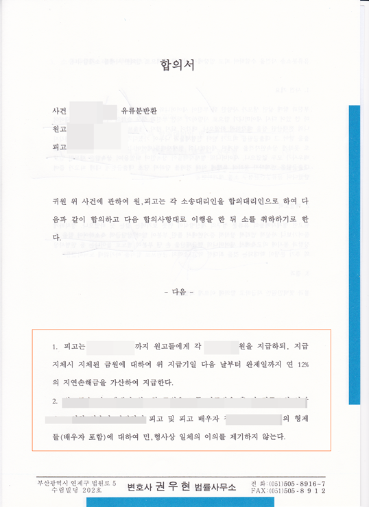 불과 몇 백 만원만 지급하고 합의에 이르게 되었음
