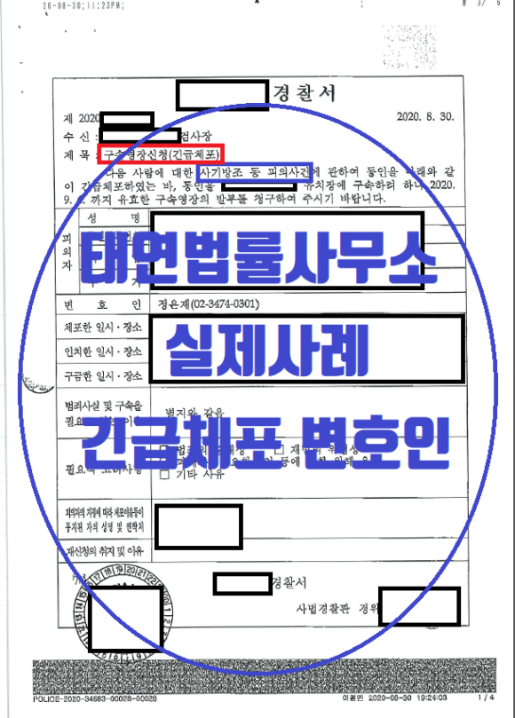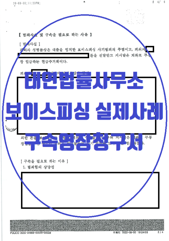 현금인출책, 수거책, 전화책 등등 다양한 보이스피싱 관련자들의 긴급체포는 어느정도 구속의 필요성과 도주우려가 인정되는 경우가 대부분이기 때문입니다. 아래는 최근 태연법률사무소에서 진행한 보이스피싱 긴급체포를 당하신 분의 구속영장신청서입니다. 지방사건으로, 공휴일 중 전화를 통해 사건을 위임하신 의뢰인분의 사건입니다.