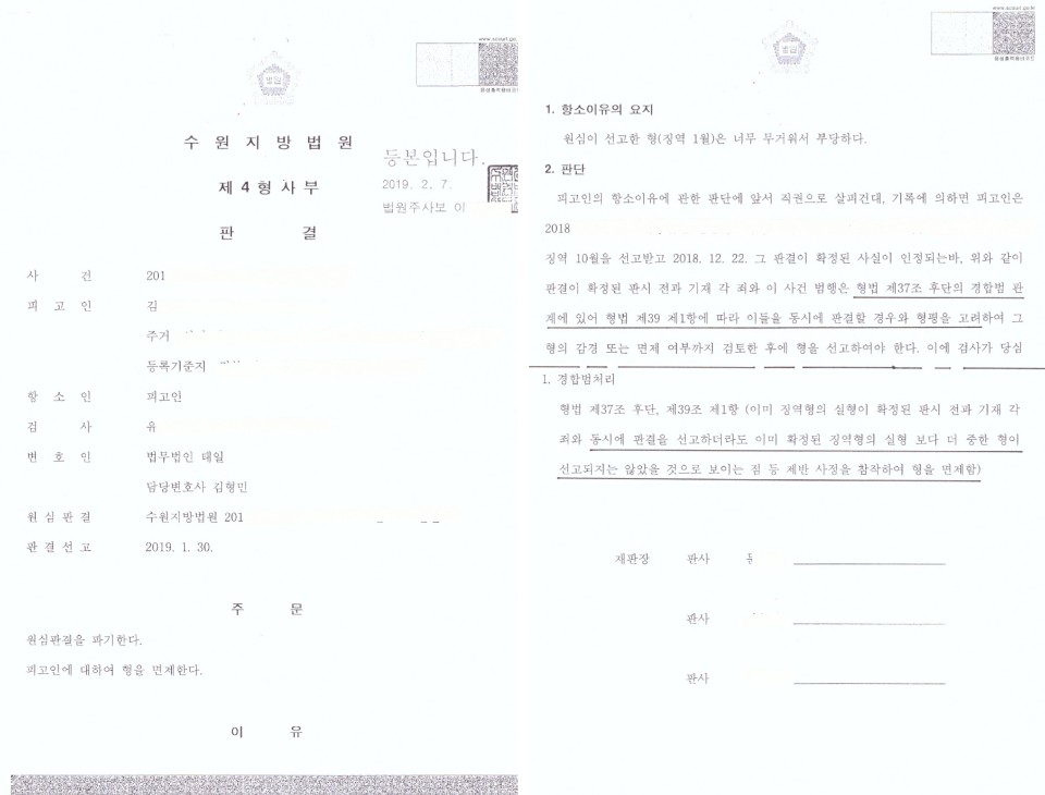 다시 처벌받을 수 있고 한 번에 재판받는 것이 유리하다고 하더라도, 자신의 모든 여죄를 스스로 자백할 필요는 없습니다. 추가 기소되더라도 판결 확정 전이라면 병합하여 한 번에 재판받는 방향으로 진행하면 될 것이고, 판결 확정 후라고 하더라도 동시에 판결할 경우와 형평을 고려하여 그 죄에 대하여 형을 선고하도록 되어 있어 불합리가 조정되고 있습니다. 제가 변호하는 사건에서 판결 확정 후에 추가 기소가 있었으나 형면제 판결을 받아 피고인의 불이익이 전혀 없었던 경우도 있습니다(추가적인 변호사 비용을 걱정하는 경우가 있으나 형면제 판결을 받은 아래 변호 건에 있어서는 추가적인 변호사 비용을 받지 않았음. 받더라도 실비 정도만 받고 진행하고 있으니 너무 걱정할 것은 아님).