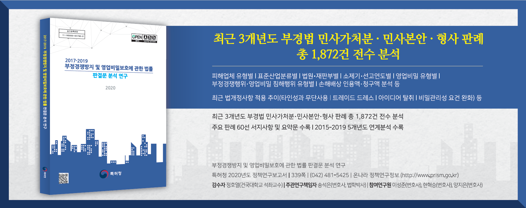 법무법인 다움에서는 특허청의 의뢰 하에 부정경쟁행위 및 영업비밀침해가 문제되었던 2017년부터 2019년까지의 판례 1,872건을 분석하여 보고서를 제작하였습니다.