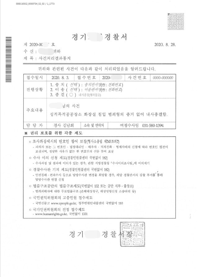 김기현 변호사는 다양한 정황증거들을 경찰에 제시하여 의뢰인의 여자화장실 출입이 실수였다는 점을 주장하였고, 경찰은 결국 위 주장을 받아들였습니다.