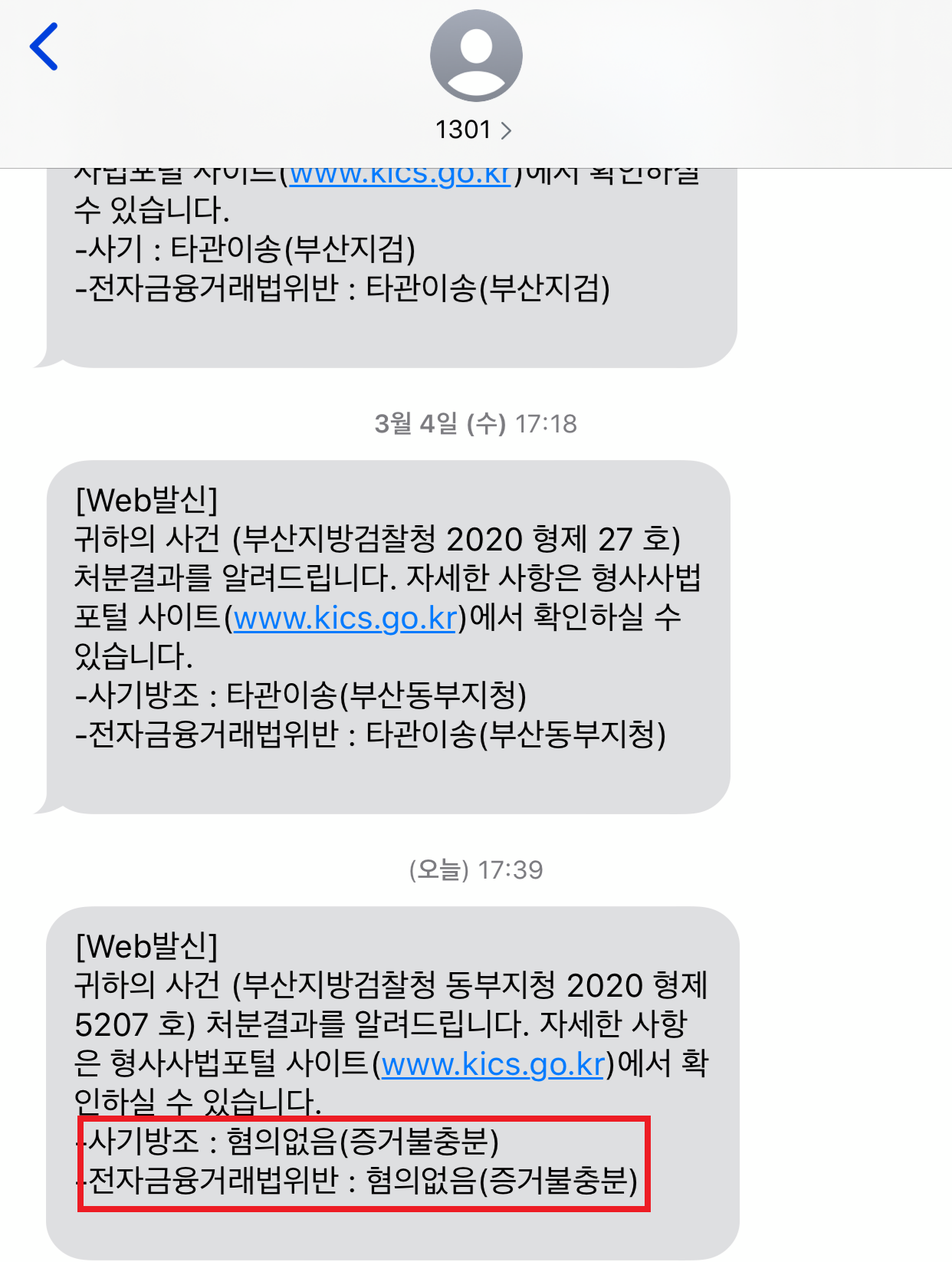 위와 같은 효과적인 변론을 통하여, 1차로 일부 범행을 범죄일람표에서 삭제시킬 수 있었고 이에 범죄지 관할이 없어져서 한 차례 타관이송된 후, 2차로 나머지 부분에 대하여도 혐의없음(증거불충분)으로 불기소처분을 받을 수 있었습니다.