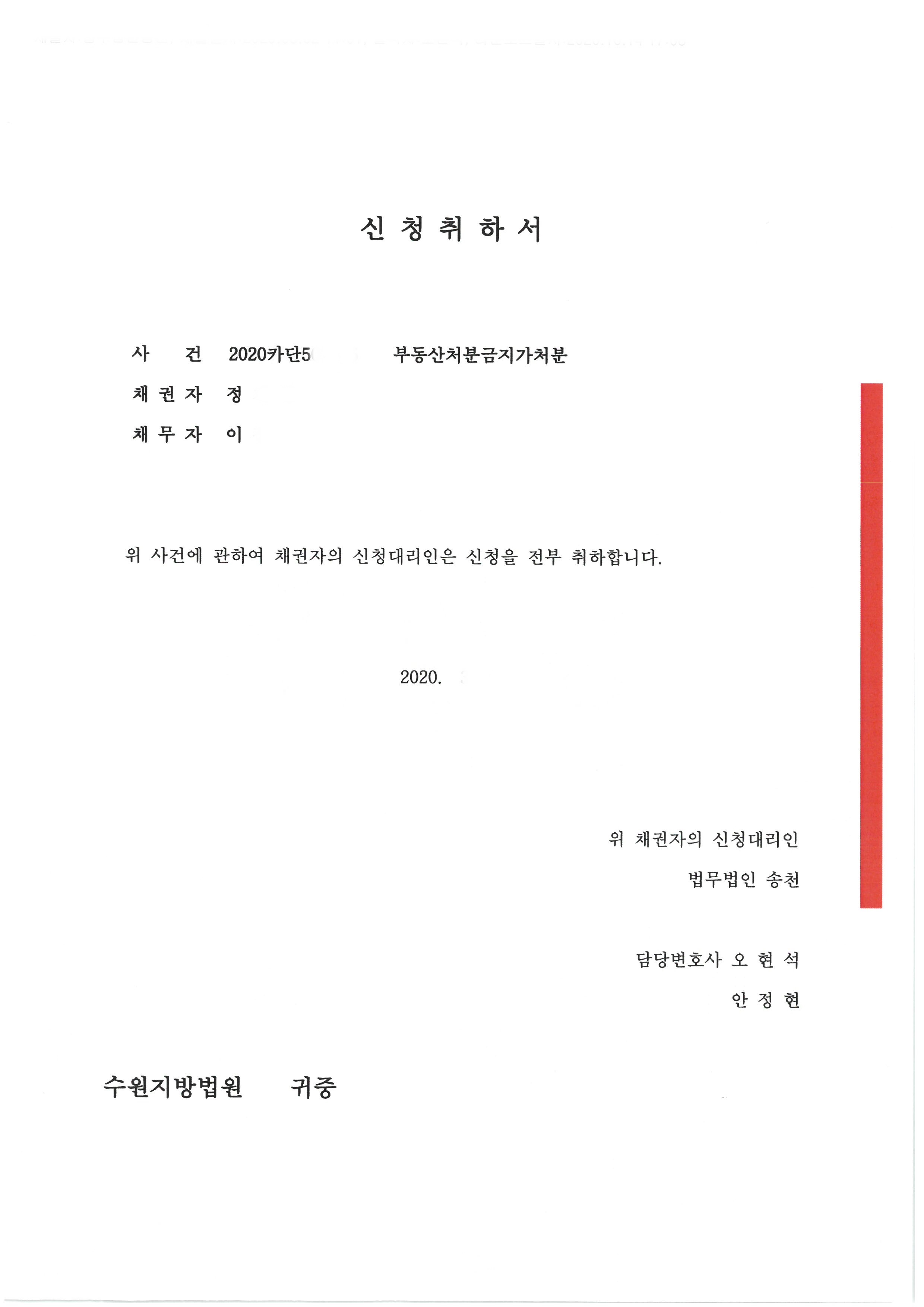 약 1주일 후 소장 접수 준비한 상태에서 상대방으로부터 연락이 왔고 계약내용대로 매도를 진행하겠다는 확약을 받은 후 신청을 취하해주어, 소장 접수 전에 쉽게 문제를 해결할 수 있었습니다.