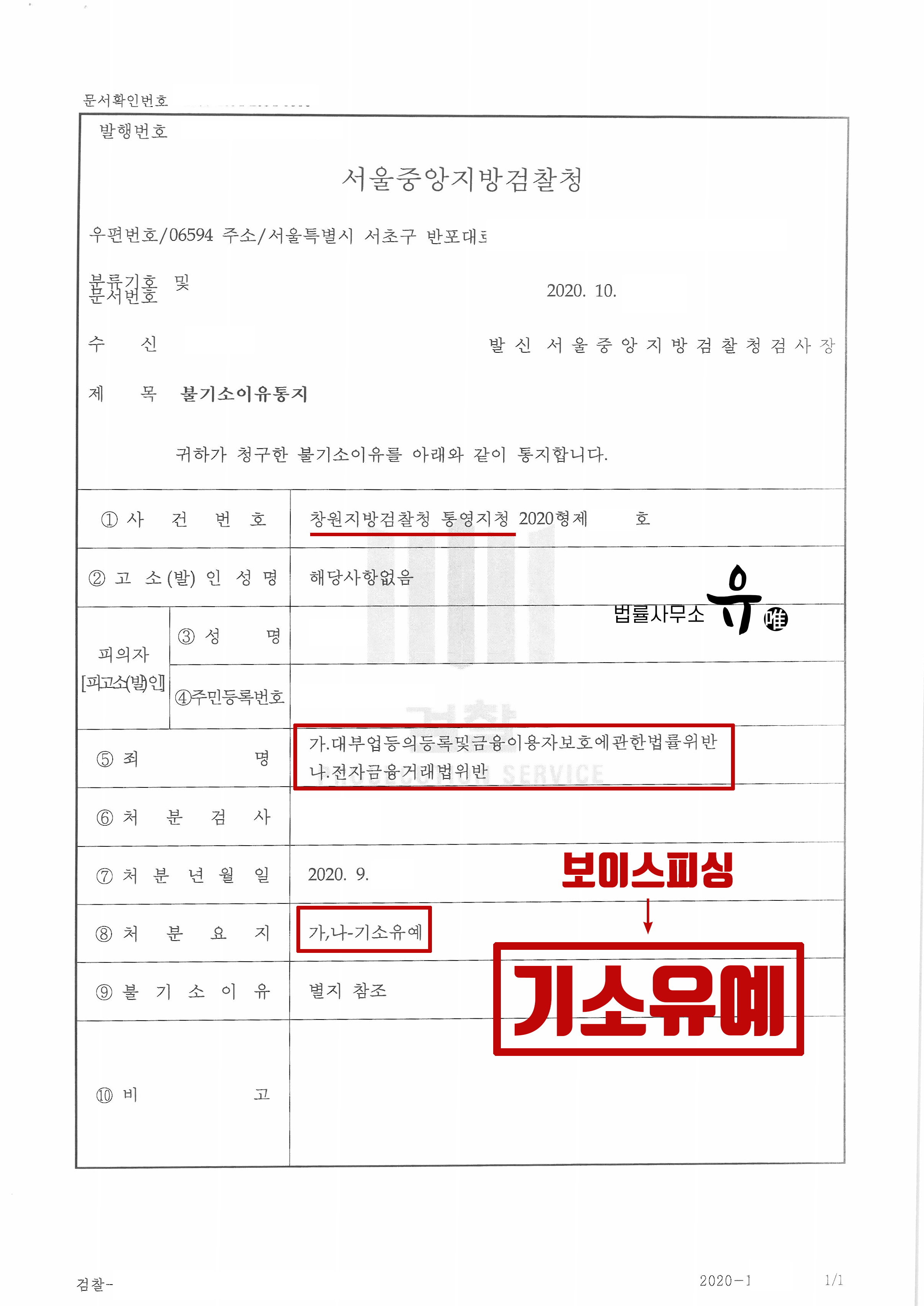 법률사무소 유(唯)는 의뢰인이 보이스피싱 사기범죄 전과가 없는 초범이라는 점, 정부지원 신용회복을 통해 성실히 대출금을 갚고 있는 시민이라는 점, 앞으로 재범가능성이 없는 이유 등 설득력을 갖춘 변호인의견서를 제출하는 등 적극적으로 변호를 하였습니다.