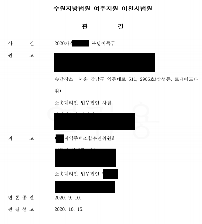저는 지역주택조합 가입계약의 취소(해제)에 따른 금원의 부당이득반환청구 소송을 상당수 진행한 노하우가 있으며, 의뢰인의 이익을 위해 '전부 승소'의 결론을 이끌어내고 있습니다.