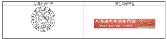 특허법원은, 「등록서비스표의 ‘징기스칸’은 몽골 제국 제1대 왕의 칭호로서 그중 ‘칸(KHAN)’ 부분은 군주를 의미하는 단어인데, ‘칸’이 생략된 형태인 ‘징기스’만으로 약칭된다고 볼만한 자료를 찾아볼 수 없다. 오히려, ‘징기스칸’은 전체로만 호칭되고 있는 것으로 보이고, 그 중 마지막 음절인 ‘칸’ 부분은 거센소리로 명확하고 강하게 발음되므로, 확인대상표장의 ‘징기스’와는 호칭에 차이가 있다.