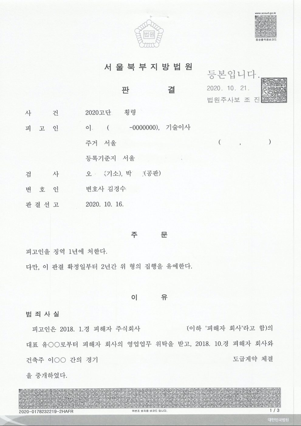 의뢰인의 횡령혐의에 대해 집행유예를 이끌어냈습니다.