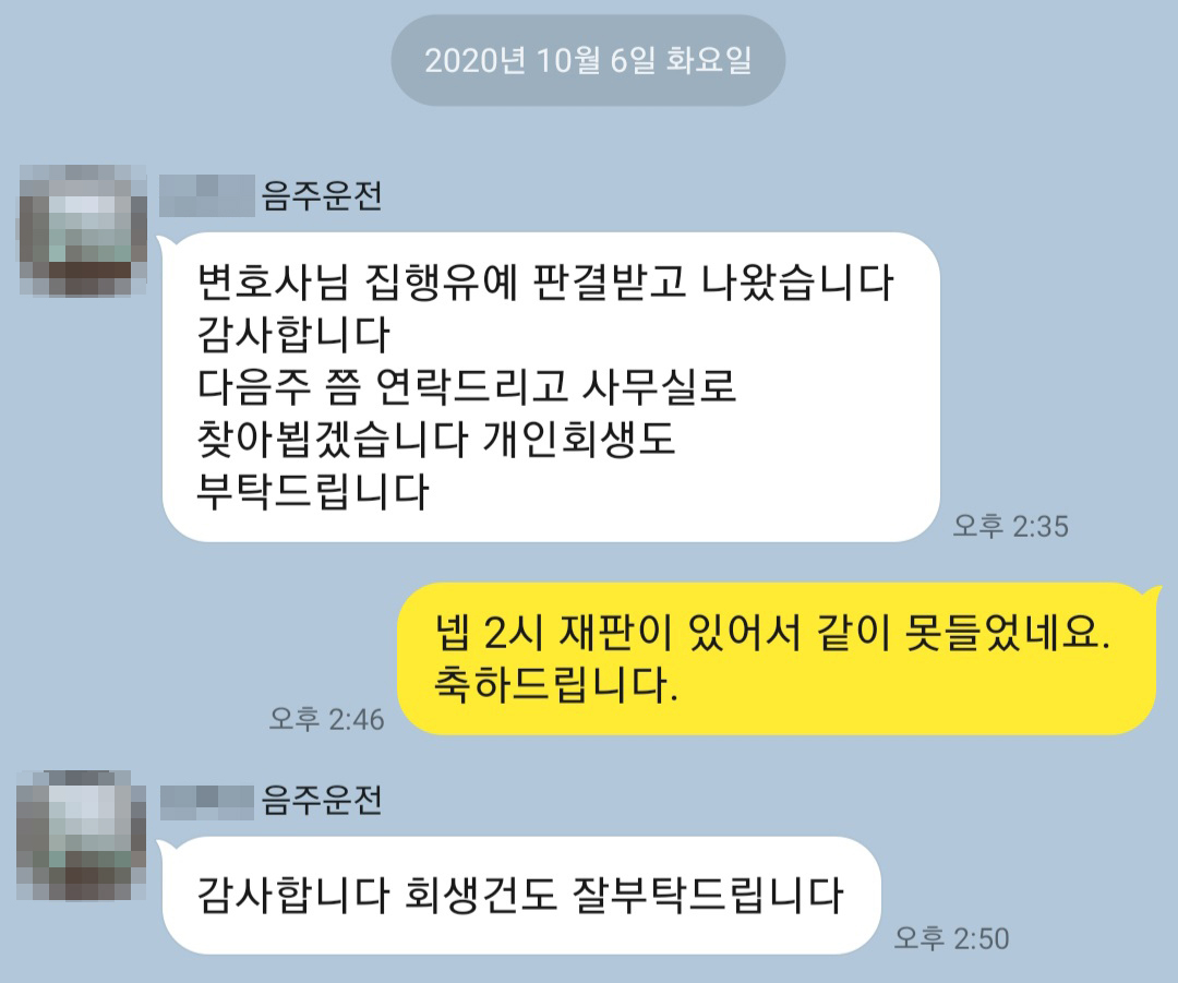 의뢰인은 이제 마음 놓고 회사 다니시고 있습니다.
