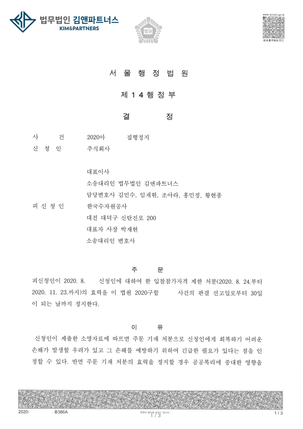 황변호사는 위와 같은 문제로 행정소송을 하겠다고 의뢰주신 의뢰인의 사건을 수임하여 집행정지 결정을 받았습니다.