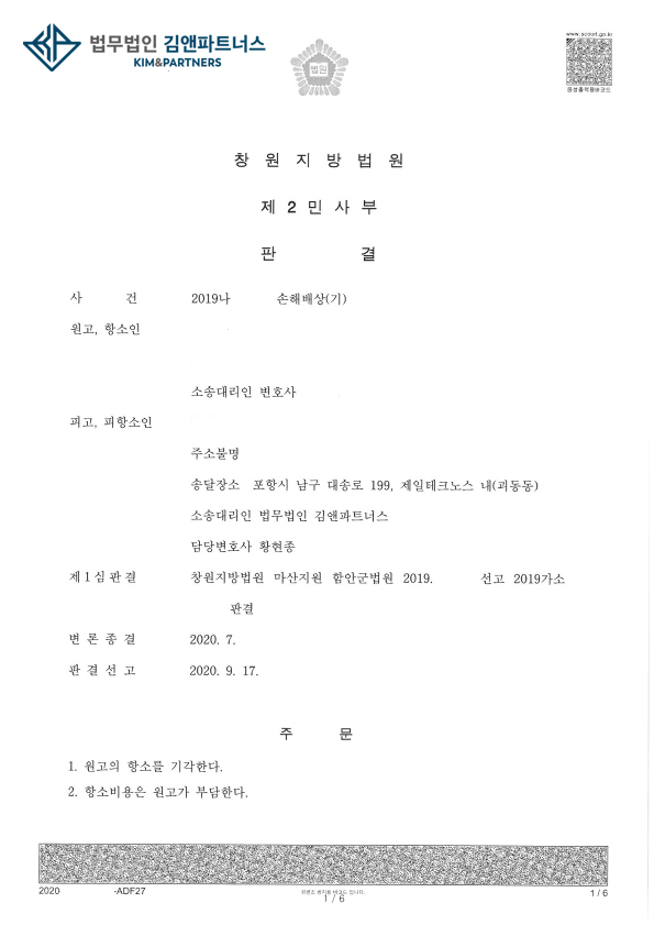 1심도 2심도 전부 패소하였고 소송비용까지 우리쪽에 물어줘야 하는 상황이 되었습니다.