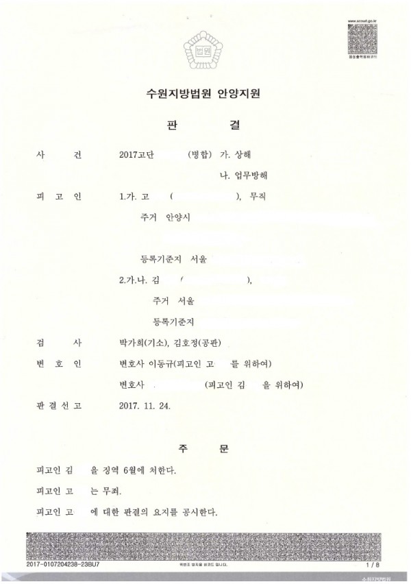 아래 사건은 거의 1년 동안 진행된 상당히 부담이 된 형사 소송이었습니다.