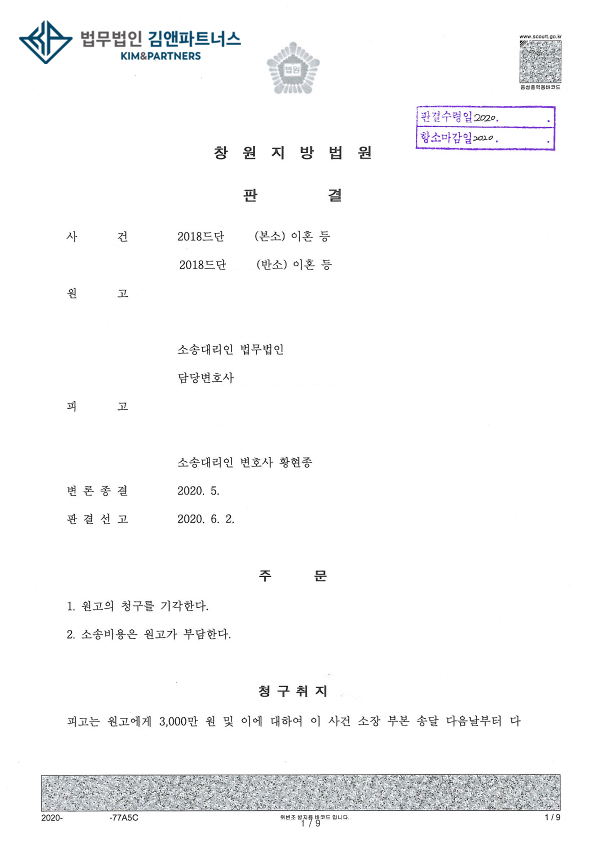 황변호사는 끈질긴 소송 끝에 결국 의뢰인이 1원도 변상하지 않는 전부 승소 판결을 받았습니다.