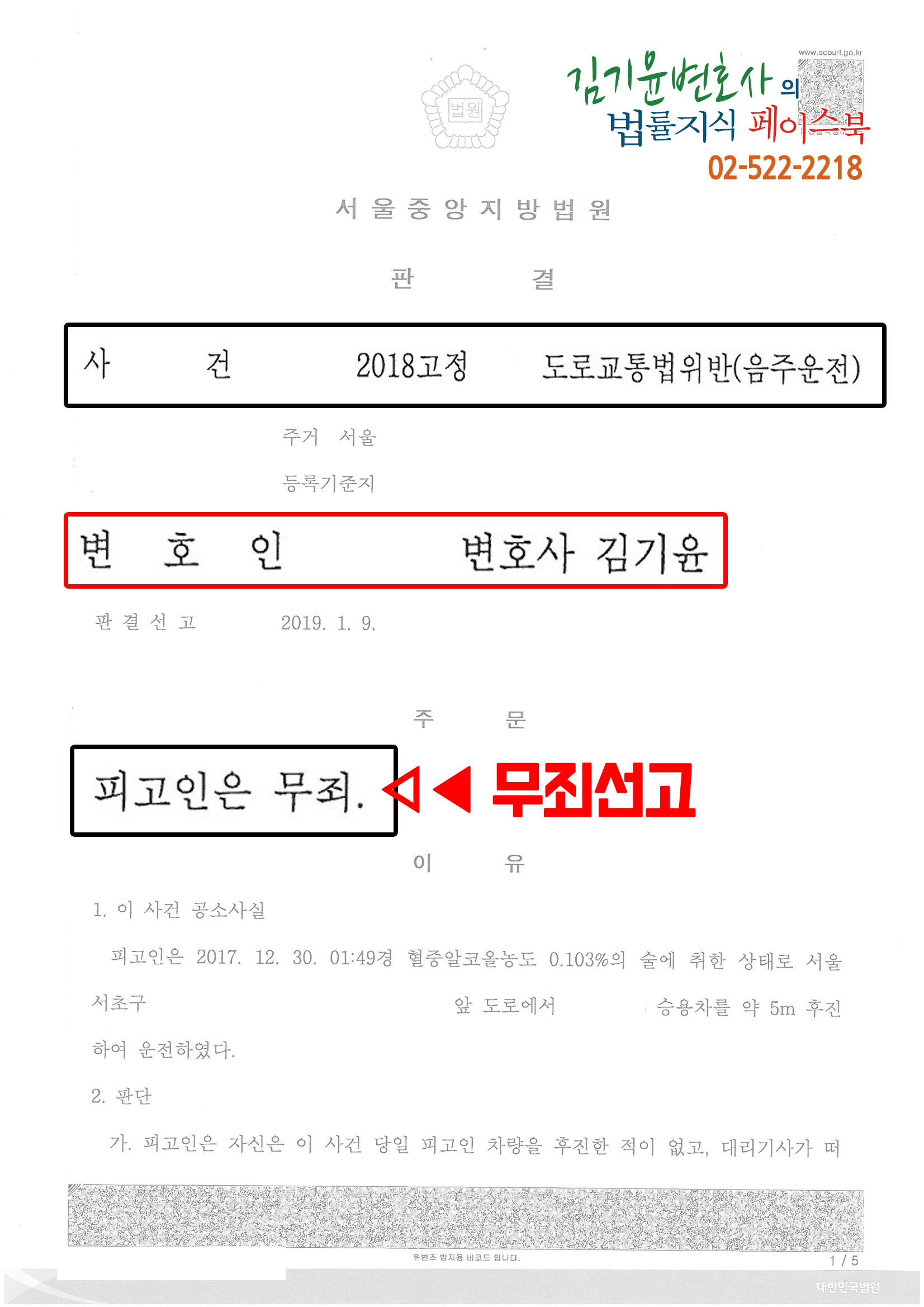 #김기윤변호사의 음주운전(도로교통법) 무죄사례 (2)