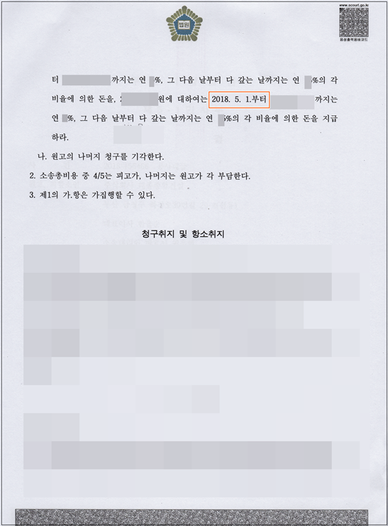 원고는 종합건설사이고 피고도 종건을 운영한 경험이 있어, 상당히 치열한 다툼이 있었습니다. 그러나 1, 2심 약 4년이 넘도록 소송하였더니 “소송이자가 엄청 붙어 금전적으로 상당한 보상”이 되었습니다.