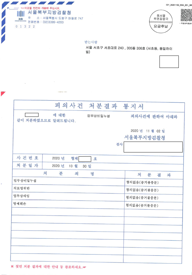 혐의 없음(증거불충분) 처분