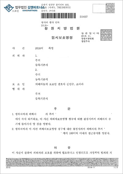 의뢰인이 자녀를 데리고 폭력 남편으로부터 도망친 후 이혼 소송을 제기하였으나 거주할 곳이 마땅치 않아 집으로 돌아갈 수밖에 없는 상황에서 배우자를 상대로 접근금지 등의 피해자보호명령 신청을 한 사안입니다.