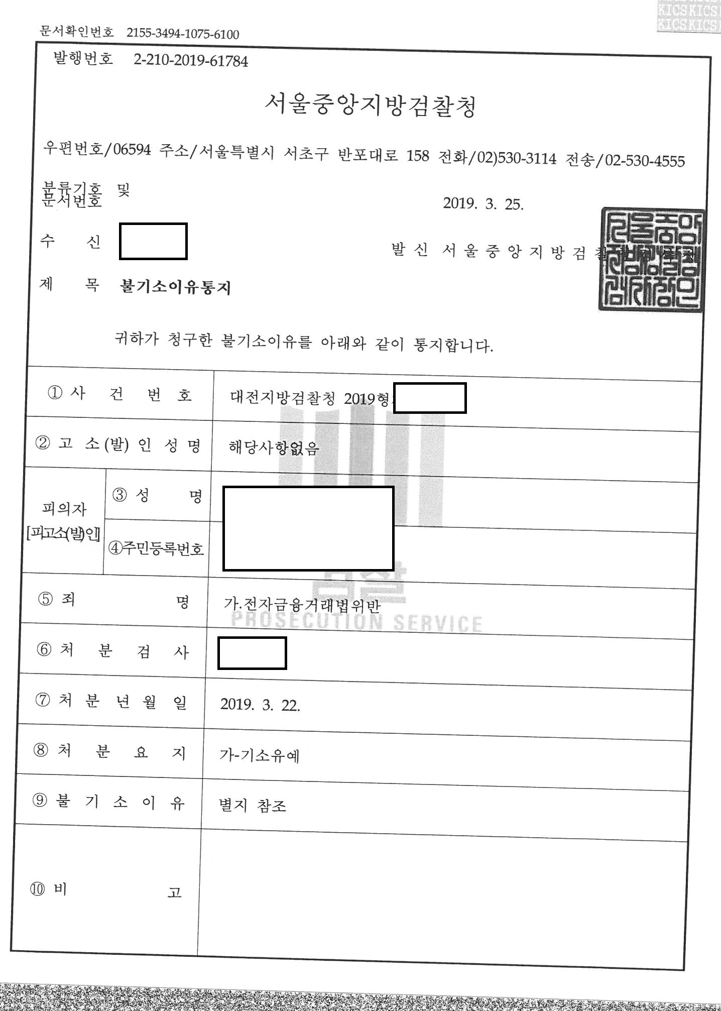 전자금융거래법 위반 기소유예, 통장 체크카드 양도 기소유예, 접근매체 양도, 벌금형 전과도 없게되었습니다. 보이스피싱 사기방조 불입건, 대전지검