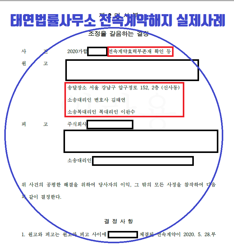 실제로 전속계약해지와 관련하여 불안한 지위를 확고히 하고자 저희 사무실에 사건을 위임하여 체계적으로 면밀하게 준비하고 전속계약해지 확인을 받는 소송을 매우 활발하게 진행하고 있는데요.