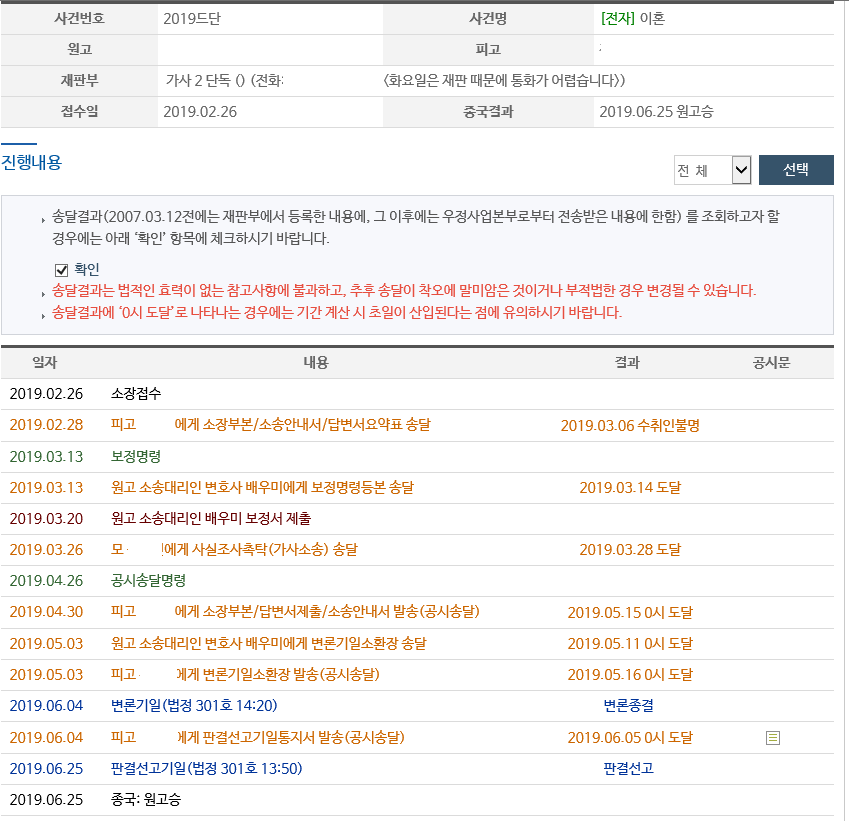 그리고 변론기일에서 판사님은 원고가 제출한 혼인파탄에 대한 증거를 확인하신 후 바로 변론을 종결하셨고, 3주 뒤 원고 전부 승소판결이 내려졌습니다.