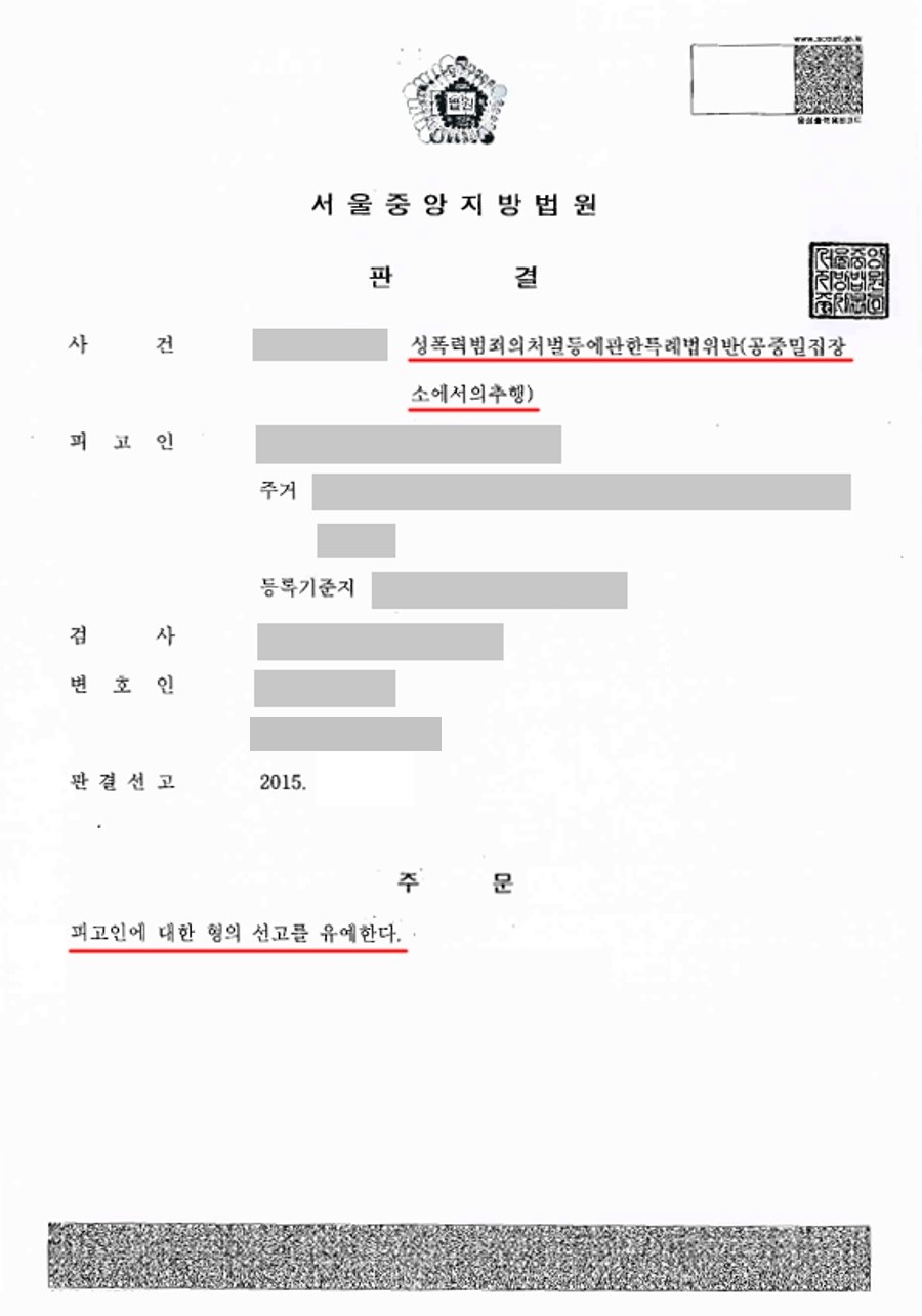 이 사건의 경우 의뢰인이 고의를 가지고 장시간에 걸쳐 공공장소에서 피해자를 추행했으므로 높은 형량을 받을 가능성이 있습니다. 초범이라고 하더라도 추행한 신체 범위가 광범위하고 피해자의 처벌의사도 확실하였기 때문에 최소 벌금형을 피할 수 없었다고 생각됩니다.