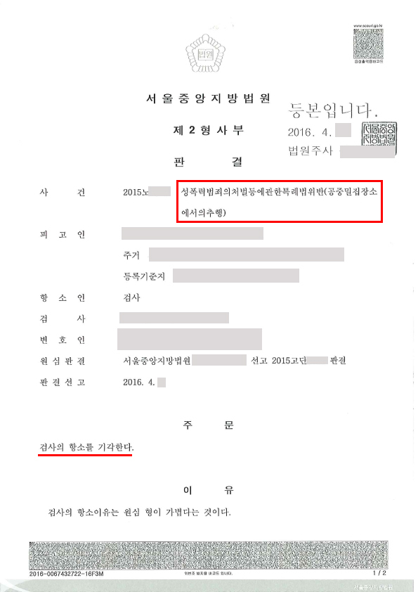 여성은 아직 잠이 들지 않은 상태였고 핸드폰으로 모바일게임을 하고 있었습니다. 의뢰인은 그 피해여성 뒤에 몸을 밀착시켰고 여성의 허벅지와 엉덩이부근을 만졌습니다. 그리고 나서는 여성의 가슴 및 중요신체부위를 만지기도 했습니다. 당시에 여성은 거부의 의사를 밝혔으나 사람이 많은 공간이어서 큰 반항은 하지 못했었습니다. 하지만 이를 지켜보고 있던 30대 중반의 어머님이 의뢰인을 성추행으로 신고하였고, 의뢰인은 현행범으로 체포되어 조사를 받게 되었습니다. 의뢰인은 자신의 죄에 대해 시인하였고 이에 따른 법원의 처분을 받았습니다. 그런데 검사가 양형이 부당하다는 이유로 항소를 하게되자 저희를 찾아오셨습니다.