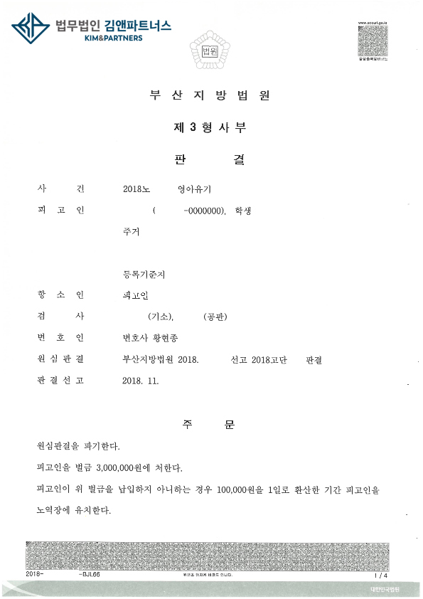 황변호사는 부산지방법원 1심에서 징역 6월에 집행유예를 선고받은 의뢰인의 항소심을 담당하여 벌금 300만원을 선고받는 파격적인 결과를 받았습니다.