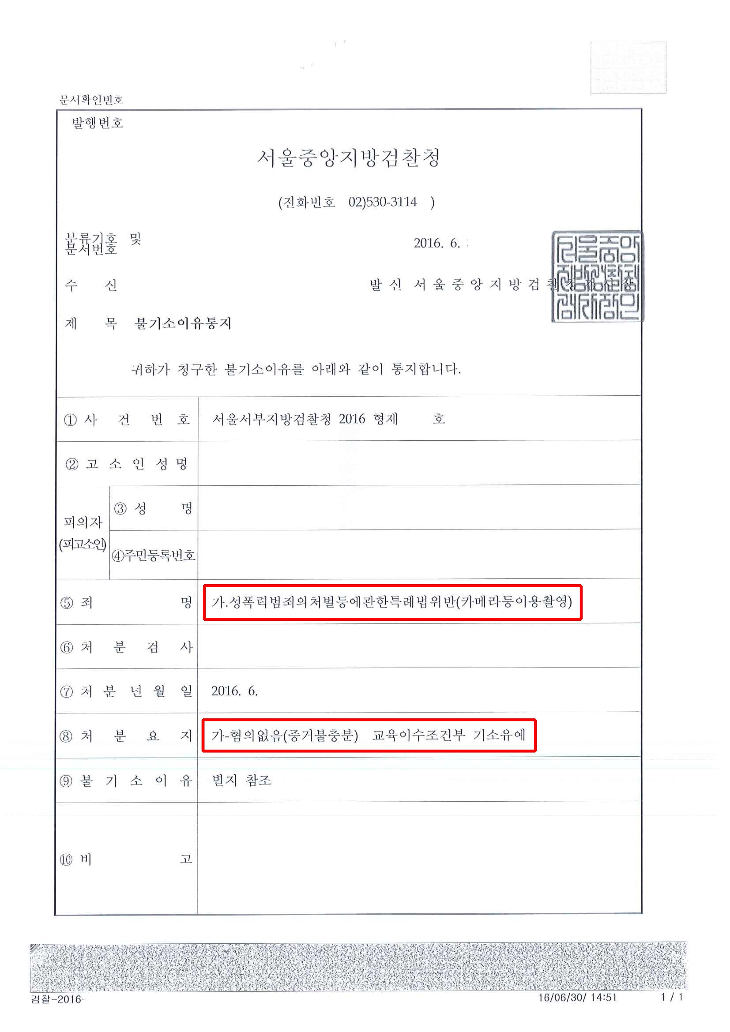 우선 피해여성과의 합의를 이끌어냈습니다. 당시 피해여성이 의뢰인과 접촉하는 것은 꺼려하였지만 변호사와의 접촉은 허락하였기 때문입니다. 그 결과 피해자로부터 탄원서를 받아 제출할 수 있었습니다. 이외에도 각종 양형에 필요한 자료를 제출하였습니다. 검찰은 혐의없음(증거불충분) 교육이수조건부 기소유예처분을 내렸습니다. 그 결과 의뢰인은 재판에 가지 않고도 사건을 종결시킬 수 있었습니다. 검찰은 피해자로부터의 탄원서 및 양형자료를 참작하여 결정한 것으로 보입니다.