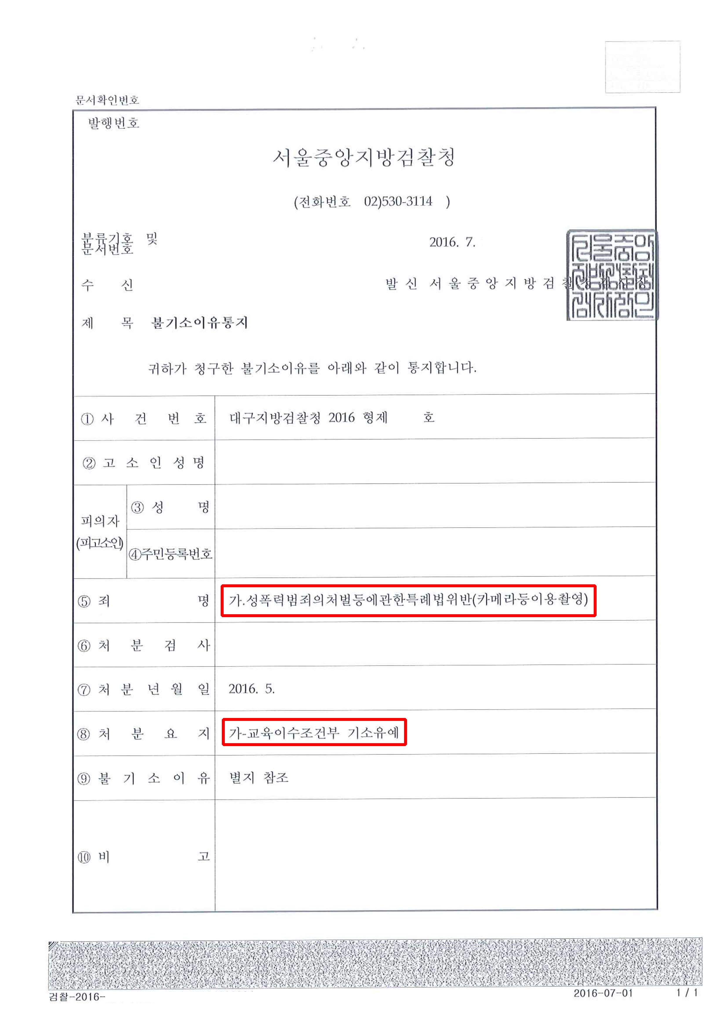 검찰조사단계에서부터 의뢰를 요청받았습니다. 사건을 맡은 후, 우선 사건정황을 살펴보았습니다. 그리고 나선 의뢰인의 반성정도, 피해자와의 합의여부 등 양형에 필요한 모든 노력을 다하여 이에 관한 자료를 제출하였습니다. 검찰은 범죄가 인정되기는하나 제출한 양형자료를 참작하여 교육이수조건부 기소유예처분을 내렸습니다.