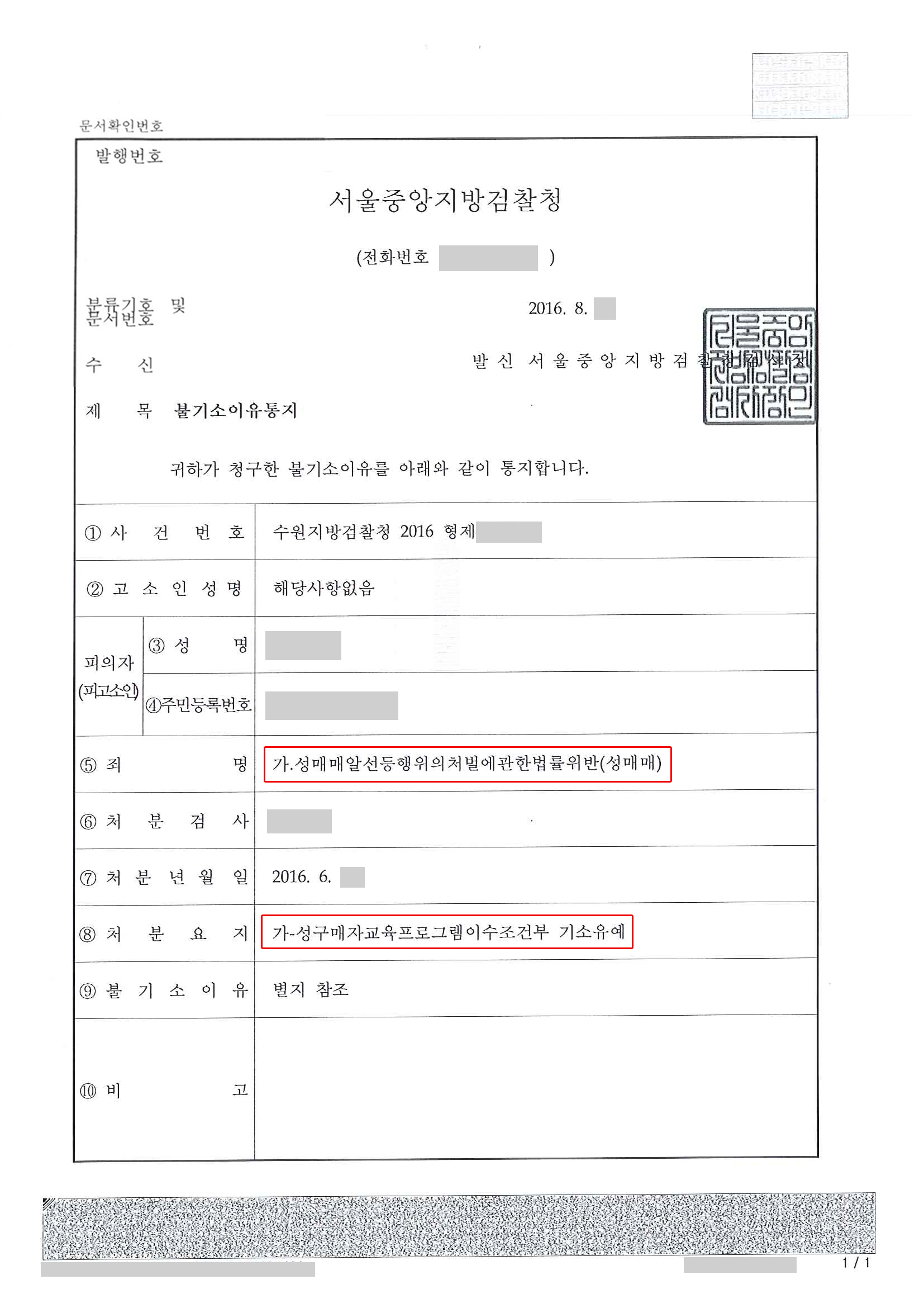 경찰조사단계에서부터 의뢰인의 변호를 맡았습니다. 경찰진술을 어떻게 해야하는지 등에 대해 의뢰인과 협의를 하였고, 검찰조사당시엔 의뢰인과 동행하여 조사를 받기도 하였습니다. 또한 양형에 필요한 각종 자료를 준비하여 제출하였습니다. 검찰은 의뢰인의 죄가 인정됨에도 불구하고 성구매자교육프로그램이수조건부 기소유예처분을 내렸습니다. 제출한 양형자료와 경찰, 검찰조사자료를 참작하여 내린 것으로 보입니다.