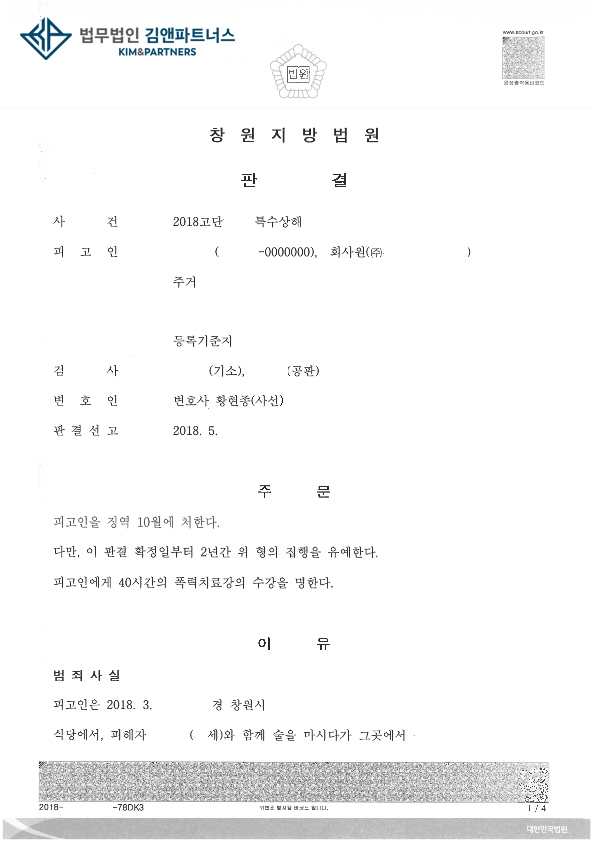황변호사와 사건을 진행한 결과 집행유예를 선고받고 다시 정상적인 생활을 할 수 있게 되었습니다.