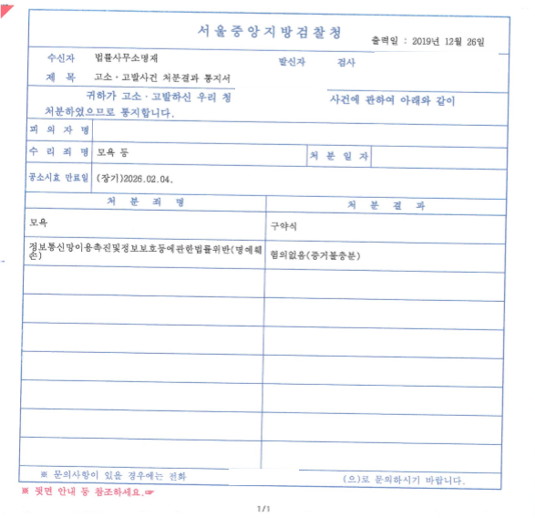 고소인들은 게임의 길드원이며 피의자는 게임 게시판에 길드원인 고소인들을 특정하여 길드에 대한 험담 및 고소인들의 SNS 주소 링크를 게시하며 모욕적인 언사를 했습니다.