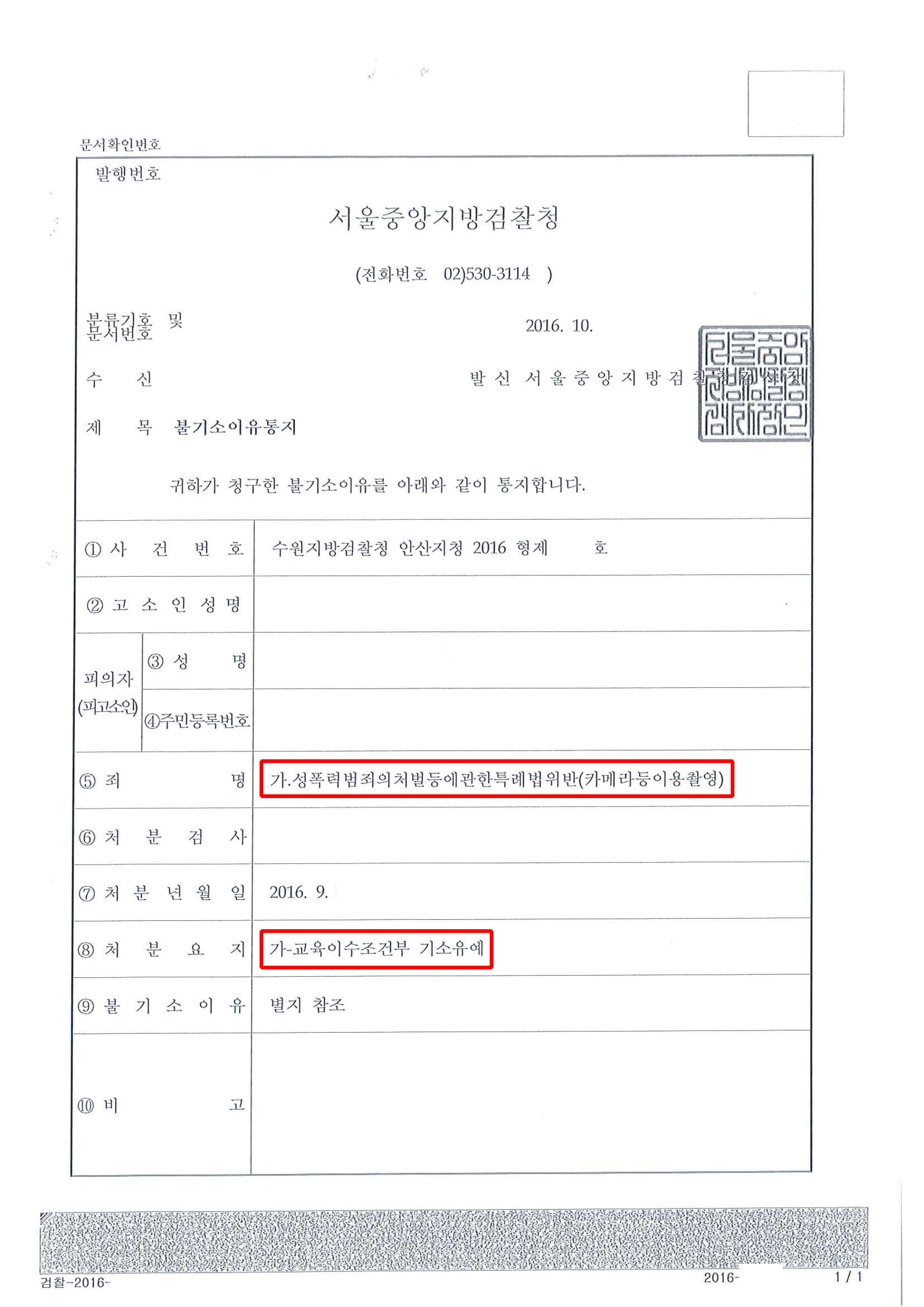 검찰은 재판 없이 사건이 종결되는 교육이수조건부 기소유예 처분을 내렸습니다.