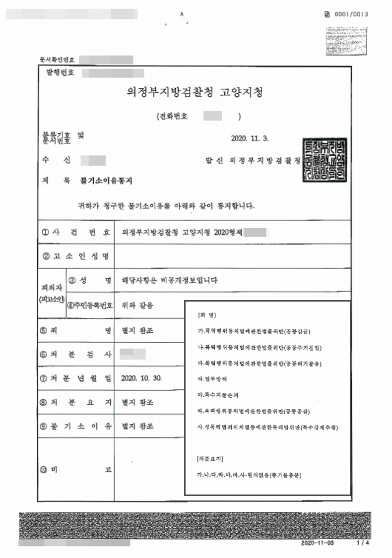본 사안의 경우 무려 7가지의 굉장히 많은 혐의를 받고 있었기에 전부 무혐의를 이끌어내기는 상당히 어려울 뿐더러, 혐의없음이 밝혀지지 않는다면 중한 처벌이 이루어질 가능성이 매우 높았습니다.