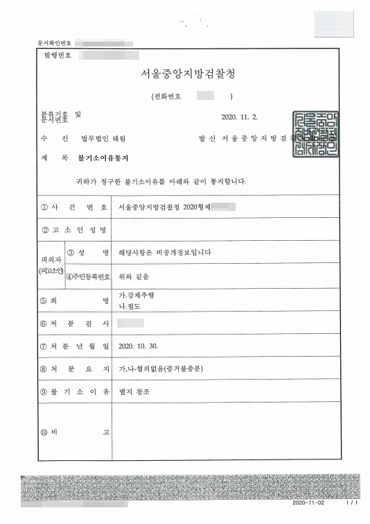 그 결과 검찰은 법무법인 태림의 변론을 모두 받아들여, 강제추행 및 절도혐의에 대해 전부 무혐의 처분을 내렸습니다.