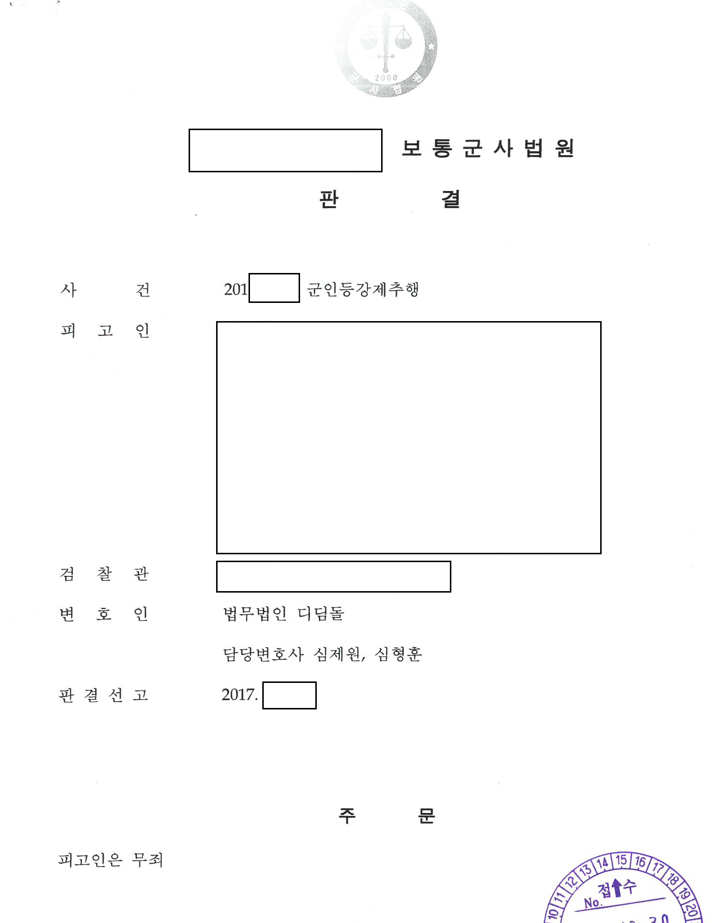 육군 군사법원에서 무죄를 선고받은 사례를 소개합니다. 군사법원에서 무죄 받기가 참 힘든데, 기어이 무죄를 받아냈습니다. 의뢰인의 인생이 걸렸던 일인데 너무 기분이 좋습니다.