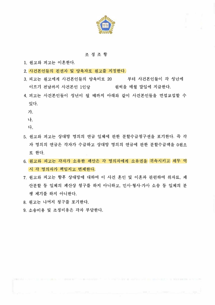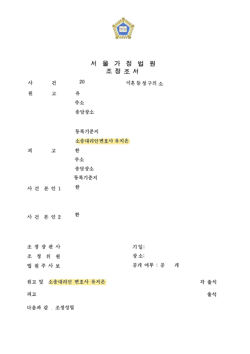 이에 혼인기간 동안 가사와 양육에는 무관심한 채 무분별한 소비생활로 재산을 탕진한 남편의 귀책 사유를 주장하며 혼인관계가 파탄된 점에 남편의 책임도 크다는 점을 강조하였고, 재산을 탕진한 남편 대신 16년의 혼인기간동안 아내 혼자서 가사와 양육을 전담하면서도 힘들게 경제활동을 하며 재산을 형성하고 유지한 점을 강조하였으며, 아이들 또한 지금까지처럼 엄마와 함께 살고 싶어 하고 수년전부터 양육비를 지급하지 않았다는 점을 주장하며 수차례 남편과 합의를 시도하였습니다.