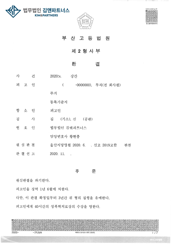 황변호사는 최근 1심에서 법정 구속된 강간 사건을 담당하여 2심에서 집행유예 판결을 받았습니다.