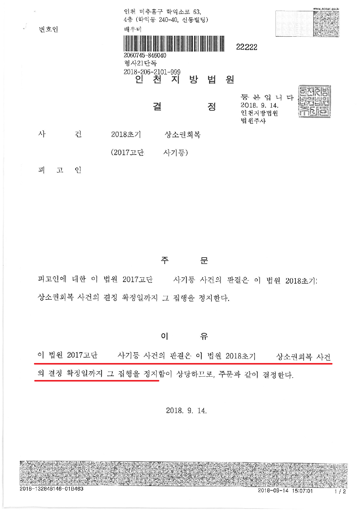 아울러, 징역 1심이 선고된 원심의 형을 집행정지한다는 결정까지 내려졌습니다.
