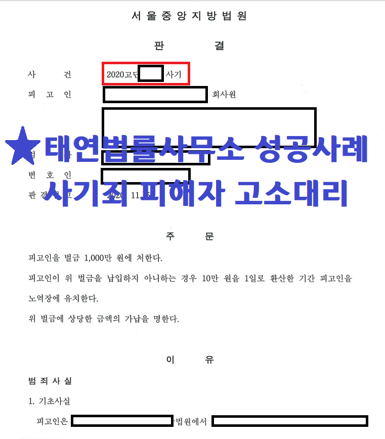 오늘도 성공사례! 사기죄변호인 성공사례로 찾아왔습니다. 변호사사무실이니까 범죄를 저지른 피고인 측 대리도 많지만, 오늘 사례는 피해자 대리 사안입니다.