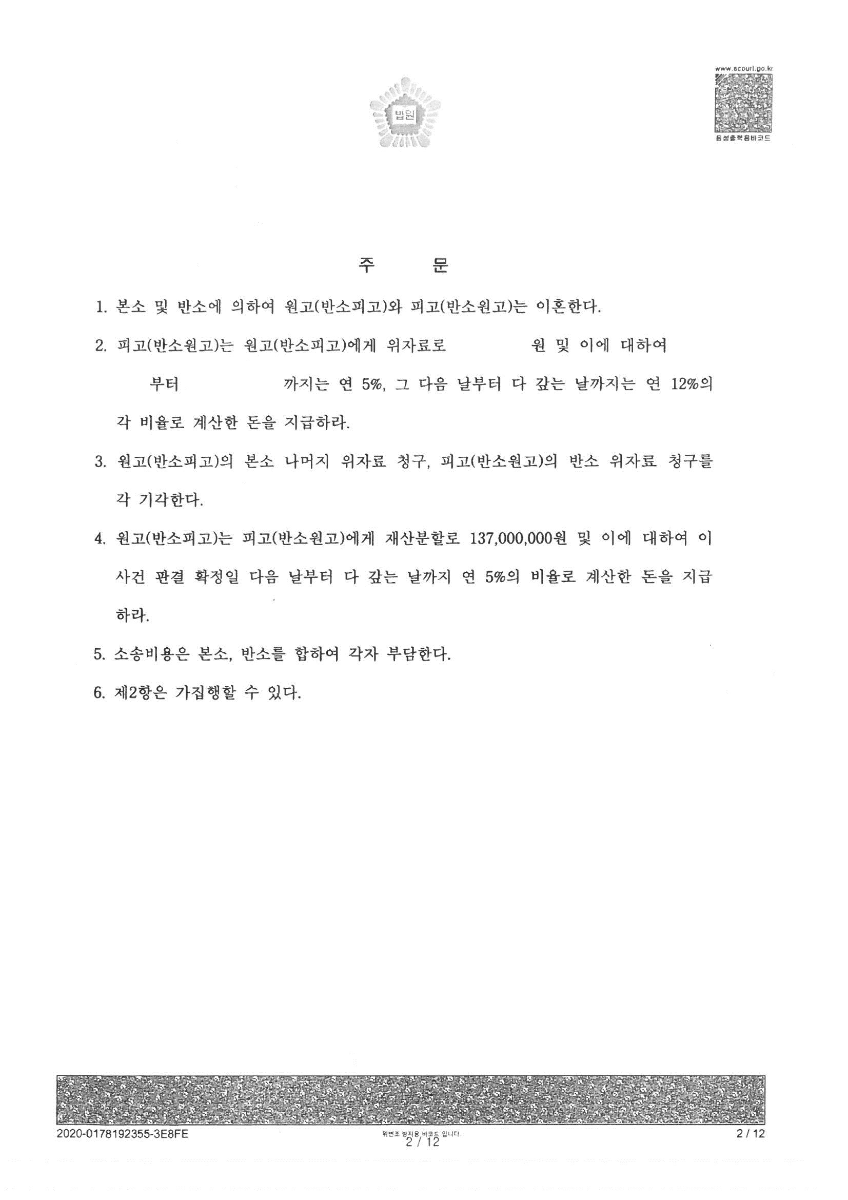 재산분할금도 화해권고금액보다 3700 만원이나 더 많은 금액이 판결이 났습니다.