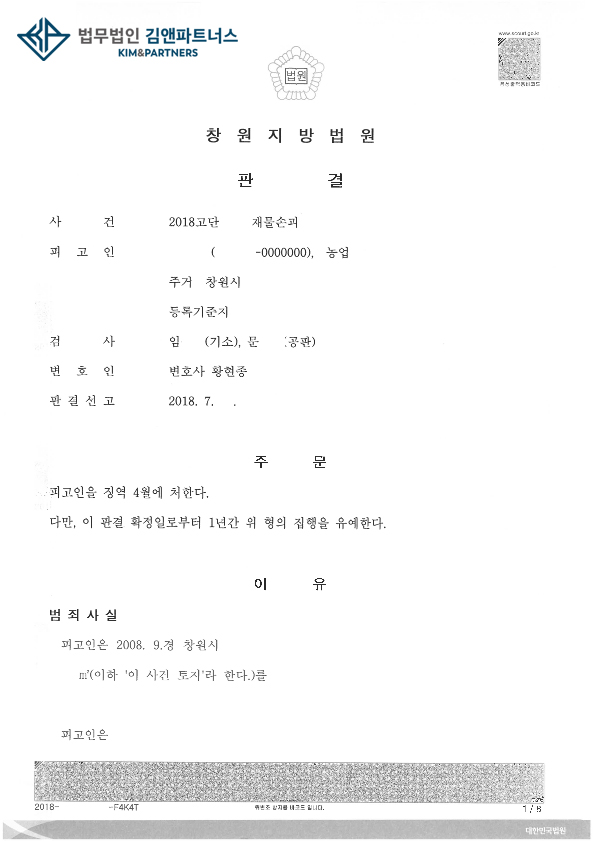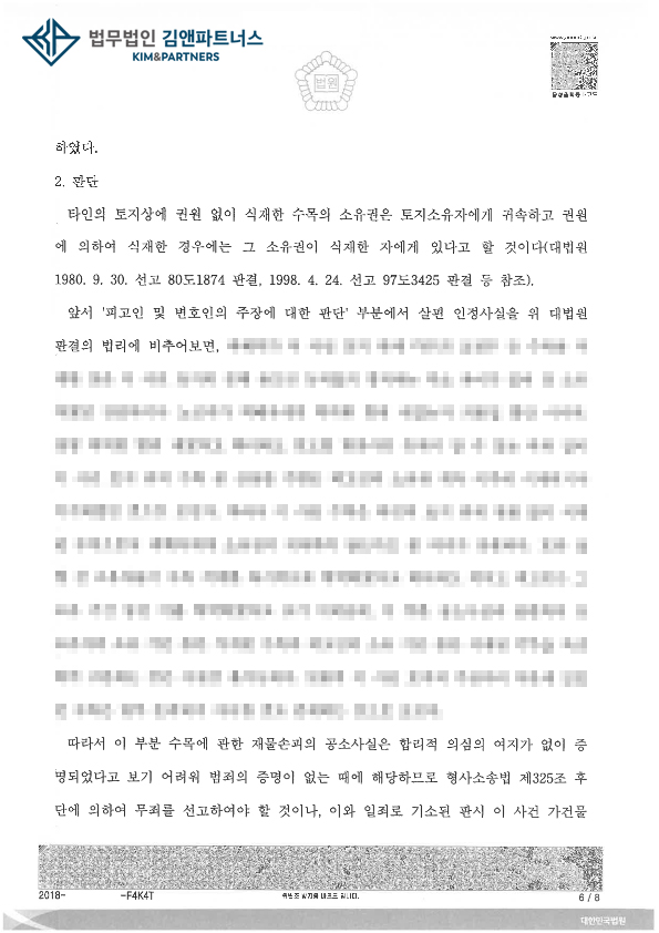 수목에 관하여 무죄판결을 받았습니다.