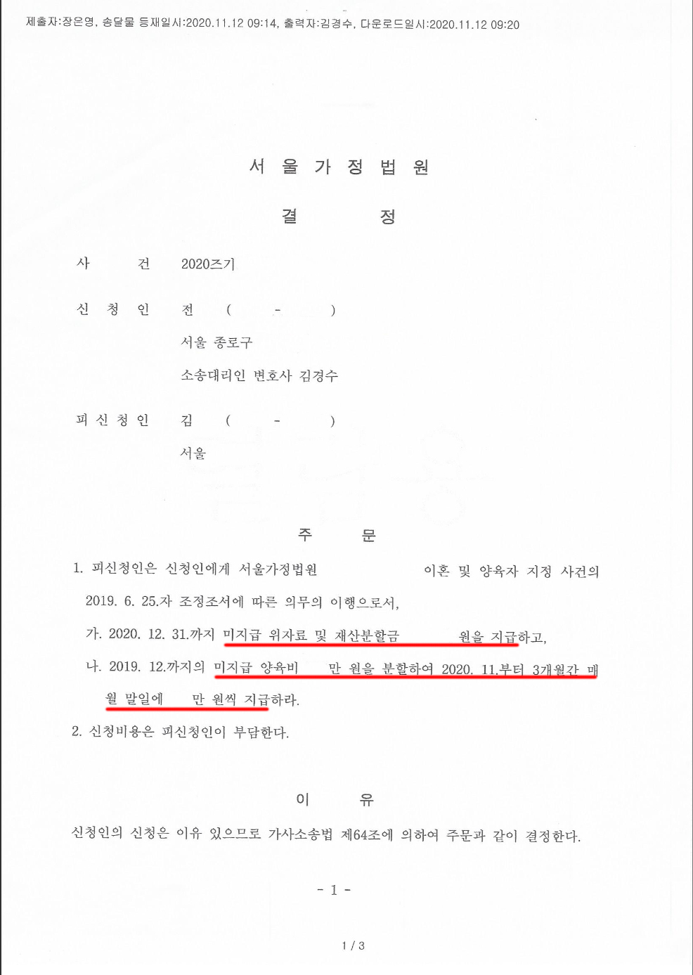 변호인은 그동안의 사정과 증거들을 종합하여 이행명령 신청에 대한 소송을 제기하였고