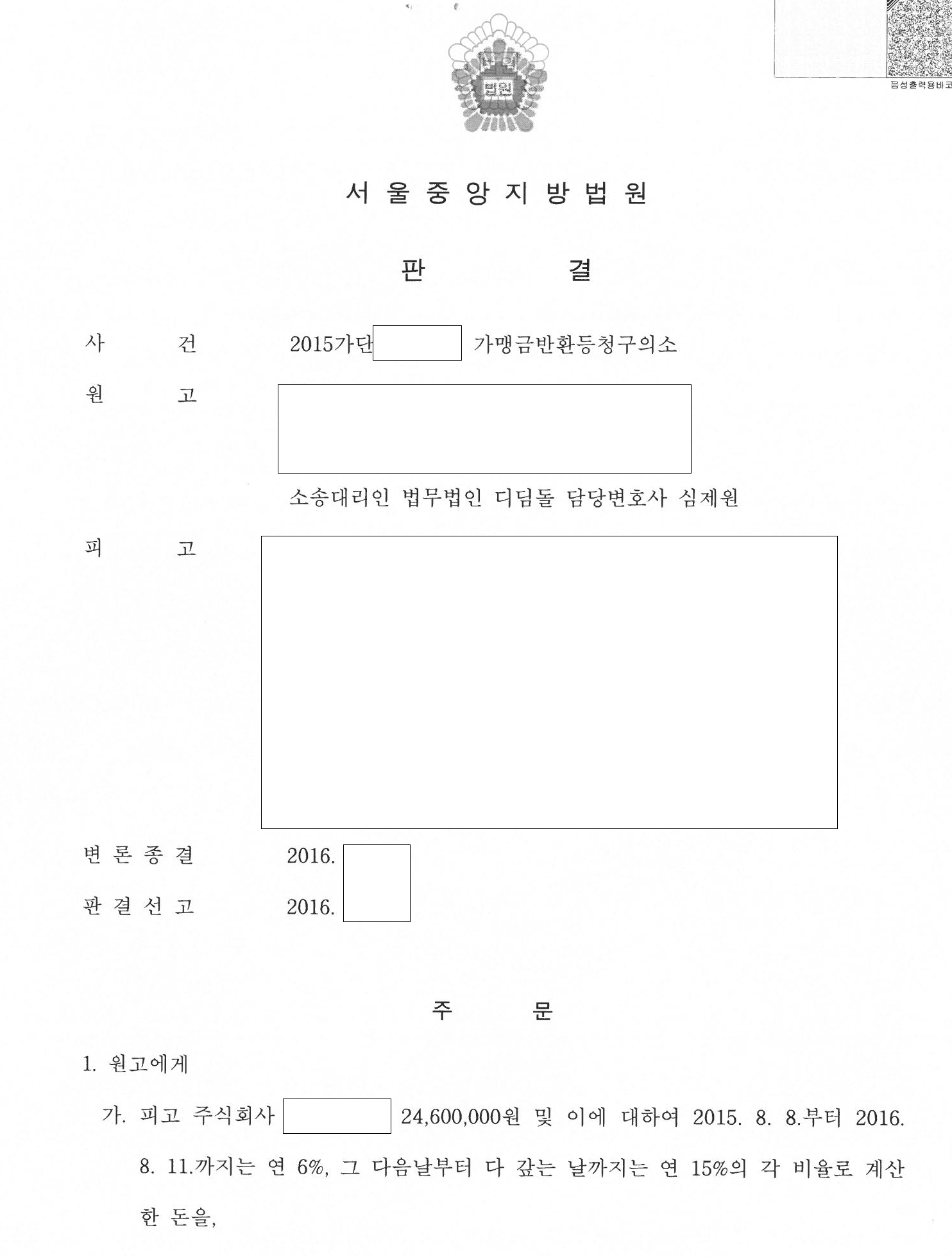 프랜차이즈 소송 해결사례를 올려보겠습니다. 가맹거래사 겸 변호사 심제원입니다.
