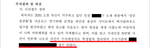 A씨는 화들짝 놀라 더 이상의 재생을 중단하고는 들여오기한 동영상들을 모두 삭제하였지만, 자신도 'N번방 사건'에 연루되었다는 생각에 죄책감을 느끼며 불안에 떨기 시작하였습니다. A씨는 관련 정보를 찾아보다가 비록 아청물이라는 사실을 몰랐다고 하더라도 아청물을 메가클라우드 들여오기하였다는 사실만으로 수사 대상이 되어 담당 수사관들이 주민등록상 주소지로 찾아와 압수·수색 영장을 집행할 수 있다는 사실을 알게 되었습니다.