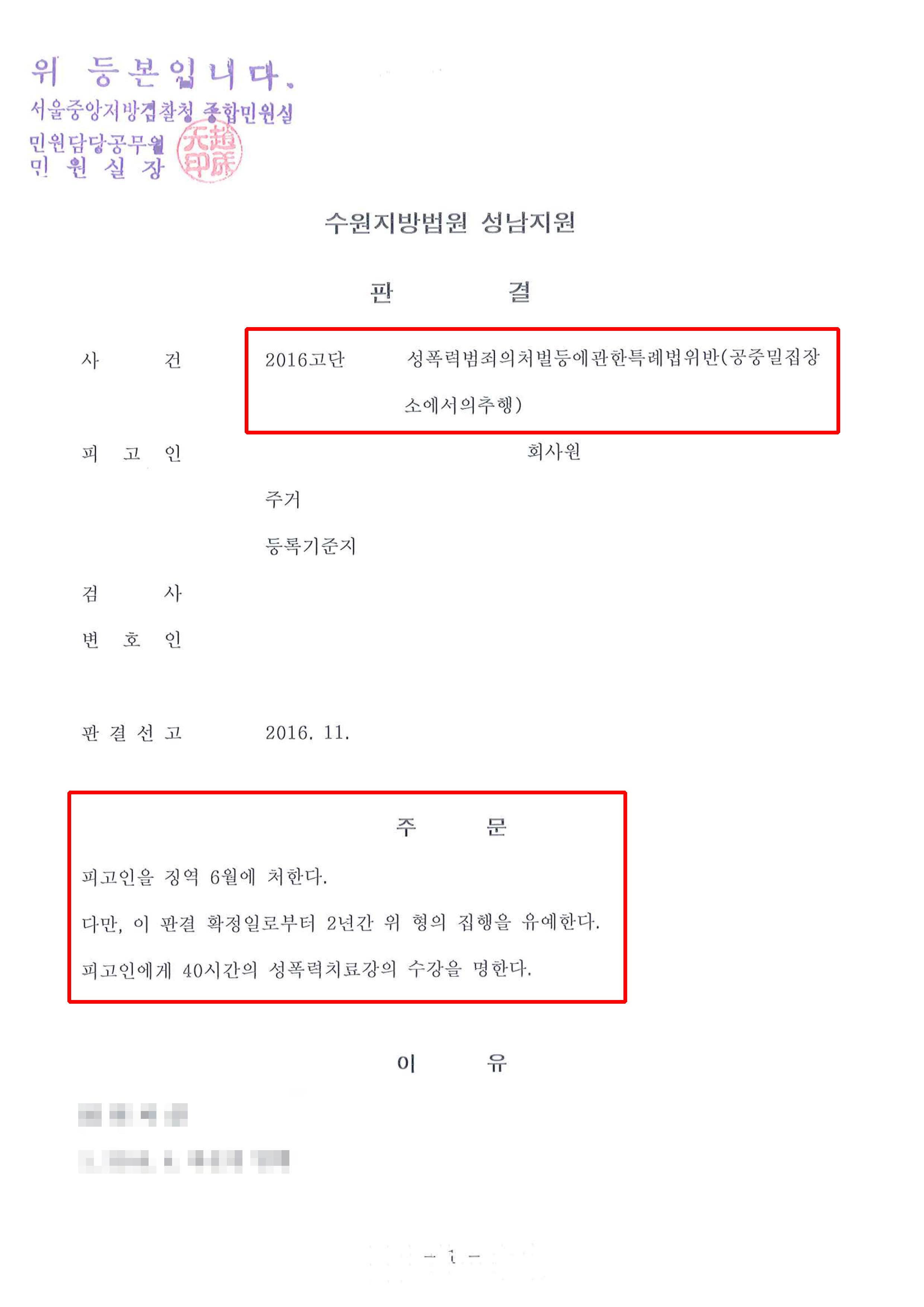 의뢰인은 그전에도 성범죄 전과가 있었을 뿐만 아니라 그동안 추행을 해오던 여성들이 의뢰인의 인상착의를 말하며 신고를 해 둔 상태였기 때문에 혐의를 벗기 쉽지 않은 상태였습니다. 또한 당시 혐의를 발뺌하고 있었기 때문에 형사 전문 변호사의 선임이 없었다면 징역형을 선고받았을 가능성이 높습니다.