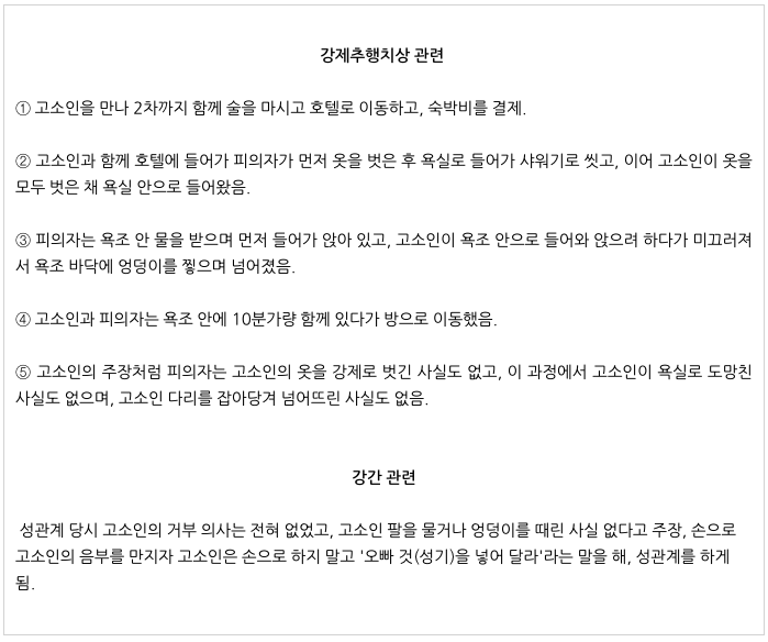 다만 이 모든 행위들은 피고소인의 주장처럼 의사에 반해 이루어진 것이 아니라, 합의에 의해 이루어진 것임을 주장하고 관련 증거들을 제출했어요.