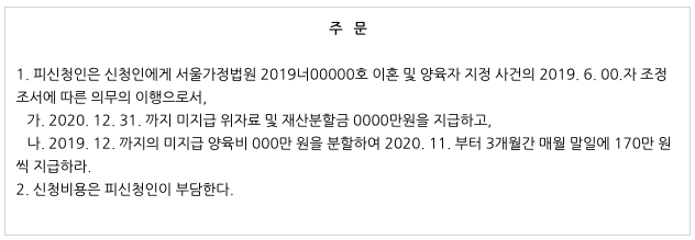 재판부에서는 우리의 주장을 전부 받아들여 주셨고, 다음과 같이 주문을 써주셨어요.