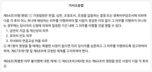 우리 가사소송법은 제64조에 이행명령 규정을 별도로 두고 있어요.
