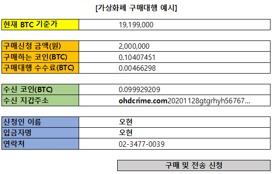 참고로, ②의 경우, 이용자가 별도로 지갑을 생성할 필요 없이 거래소 계좌로 일반화폐(원화)를 송금하면, 거래소가 수수료를 공제한 후 일반화폐를 가상화폐로 환전(=구매대행)하여 이용자가 지정한 지갑으로 가상화폐를 전송해 주는 개념입니다(아래 그림 참조).